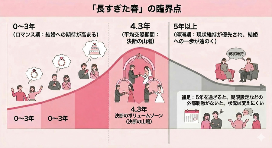 つまり、5年を超えている今の状態は、統計学的に見ても「結婚か、それ以外の形か」を決定すべき臨界点をすでに過ぎているのです。